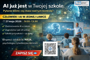 Konferencja „Człowiek i AI w jednej ławce. Szkoła, klasa, gabinet – jak działać razem od 2026 roku”15 kwietnia 2026Zapraszamy na konferencję poświęconą praktycznemu wykorzystaniu AI w edukacji oraz wyzwaniom, jakie niesie jej obecność w szkole […] Czytaj więcej