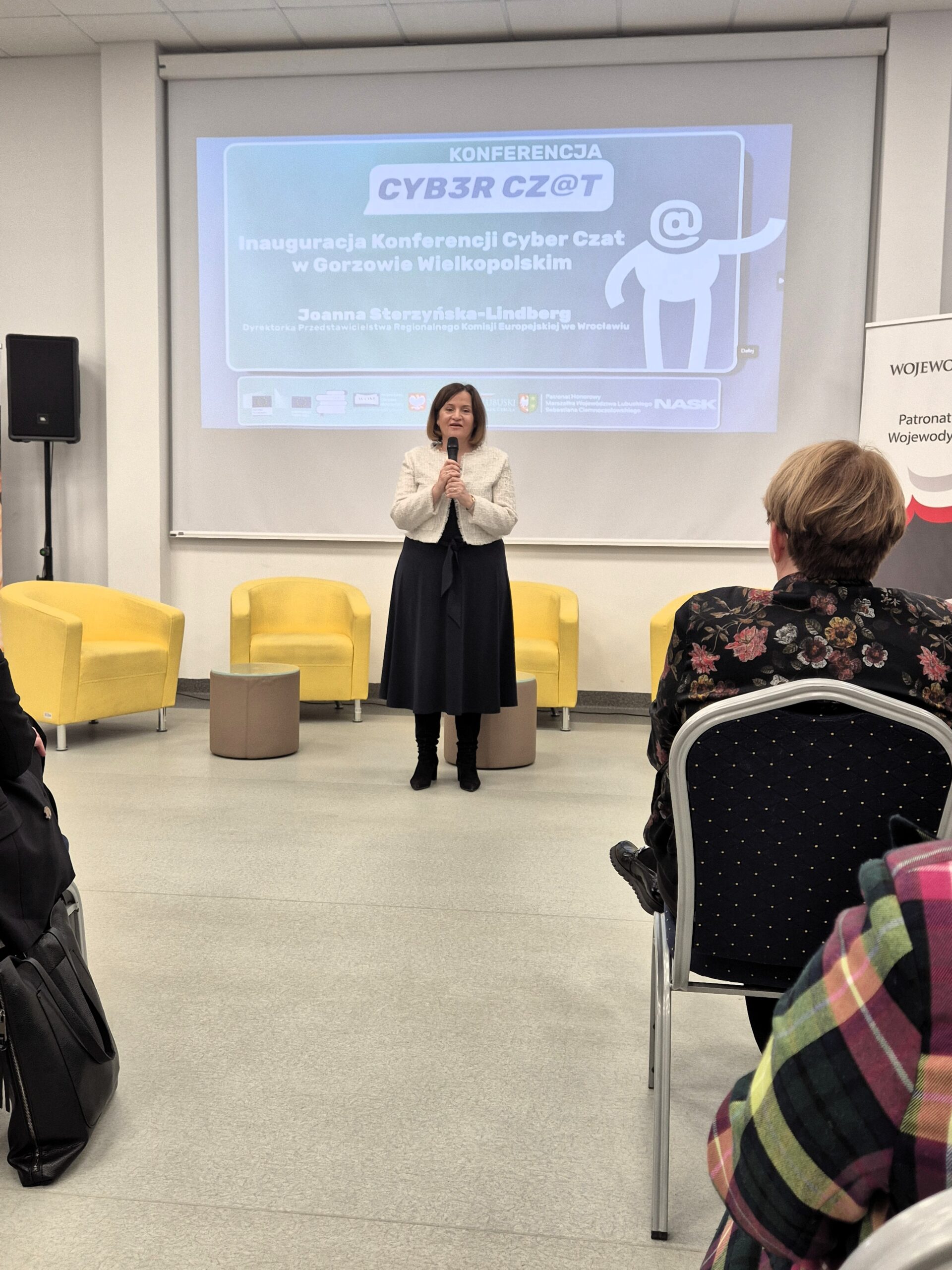 Konferencję zainaugurowała Joanna Sterzyńska-Lindberg, Dyrektor Przedstawicielstwa Regionalnego Komisji Europejskiej we Wrocławiu, która podkreśliła znaczenie współpracy europejskiej w obszarze edukacji i bezpieczeństwa cyfrowego.