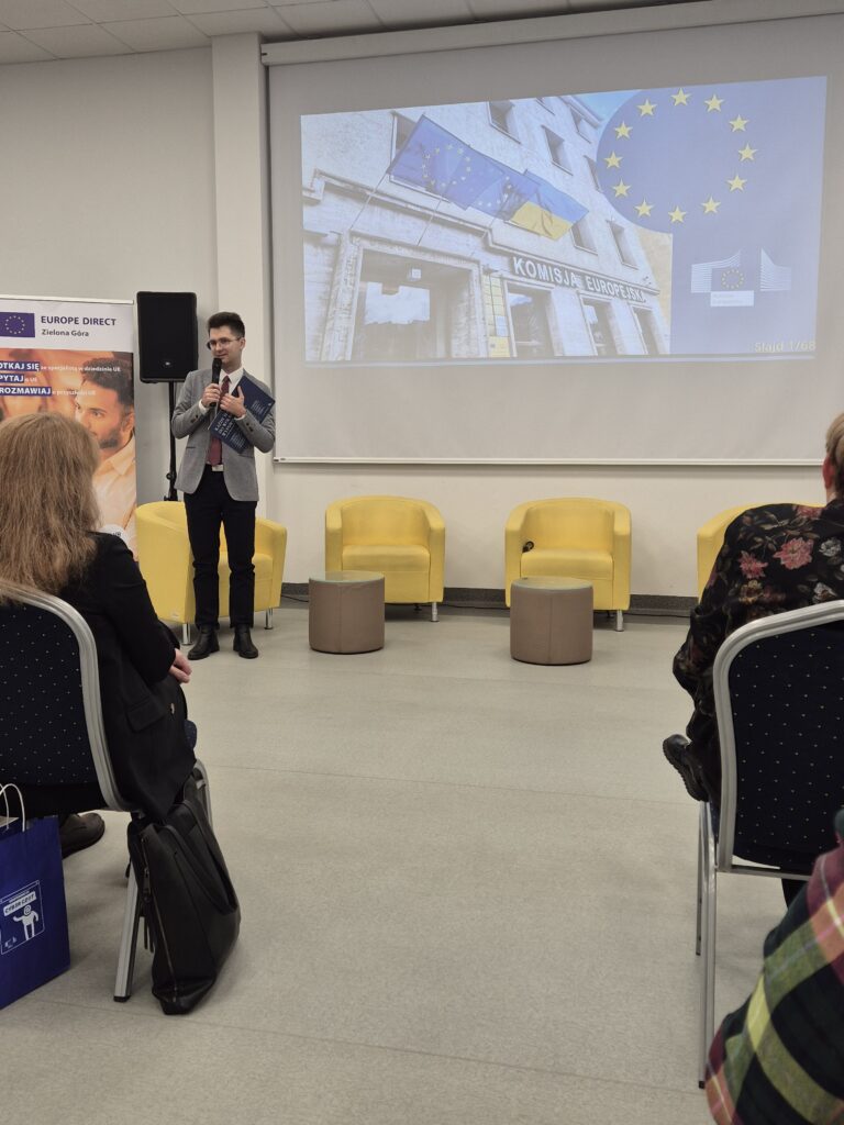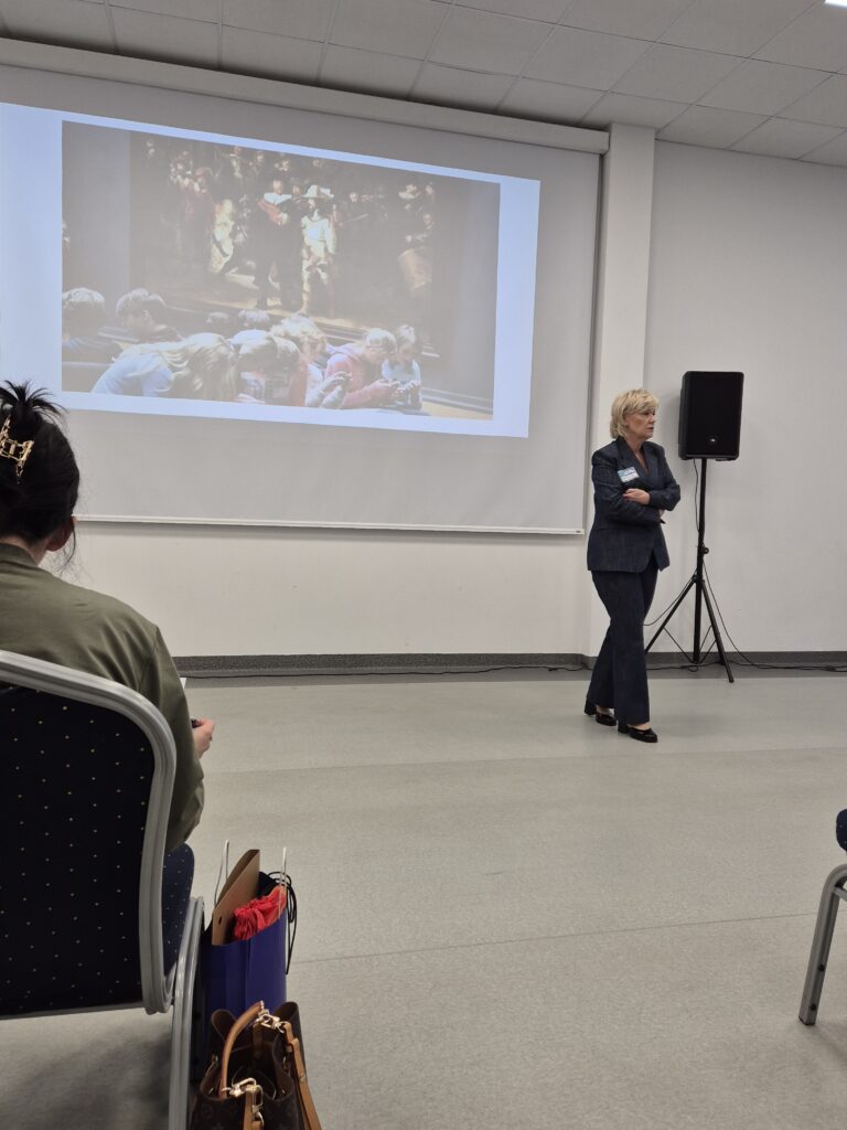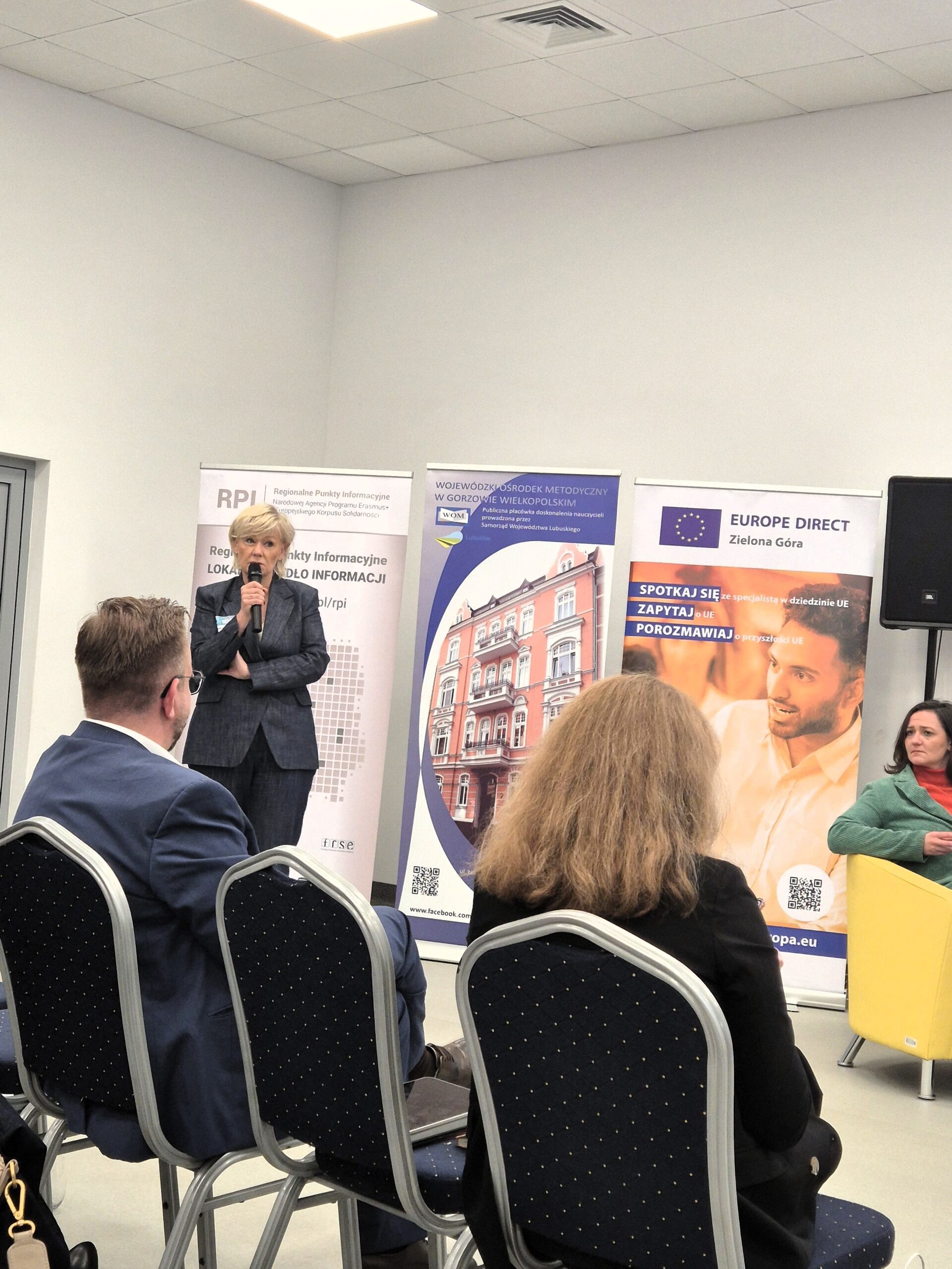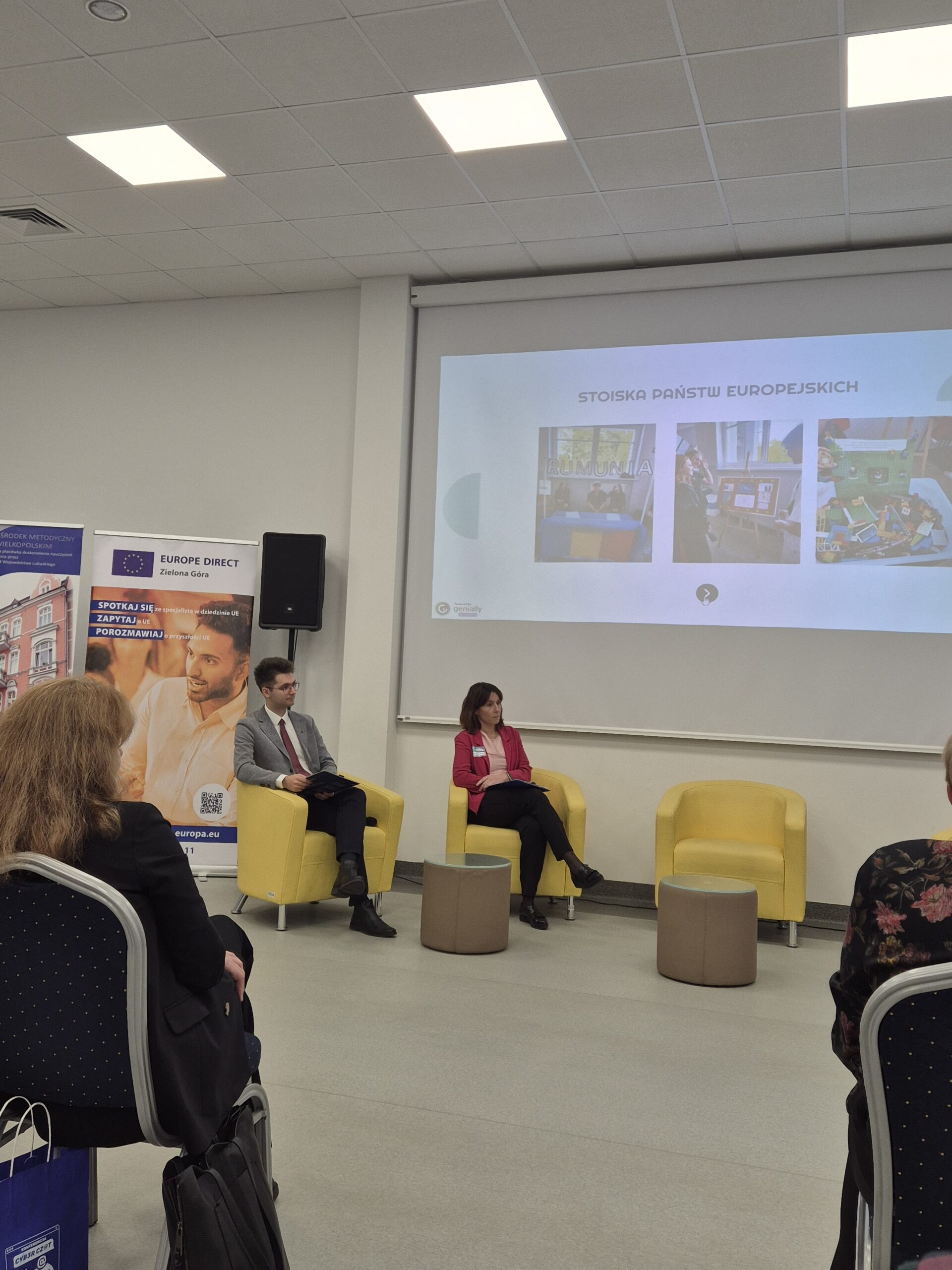 Podczas pierwszej części wydarzenia uczestnicy mieli okazję wysłuchać wystąpienia „Po europejsku – dobre praktyki i źródła”, w którym zaprezentowano programy i inicjatywy Unii Europejskiej skierowane do młodych ludzi i nauczycieli.