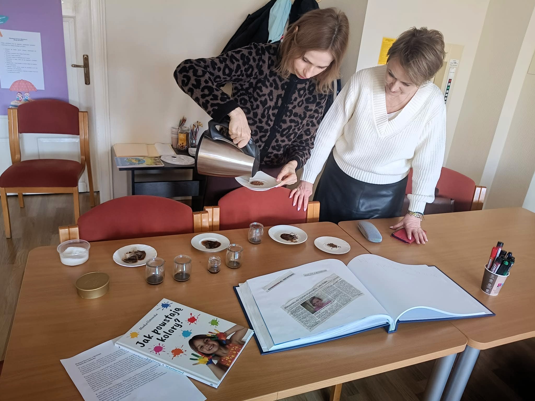 Wystarczy odrobina kawy i gorąca woda, by stworzyć wyjątkowy obrazy. Przekonały się o tym uczennice Szkoły Podstawowej nr 13 w Gorzowie, które 11 lutego 2026 roku wzięły udział w warsztatach artystycznych w Bibliotece Pedagogicznej Wojewódzkiego Ośrodka Metodycznego.