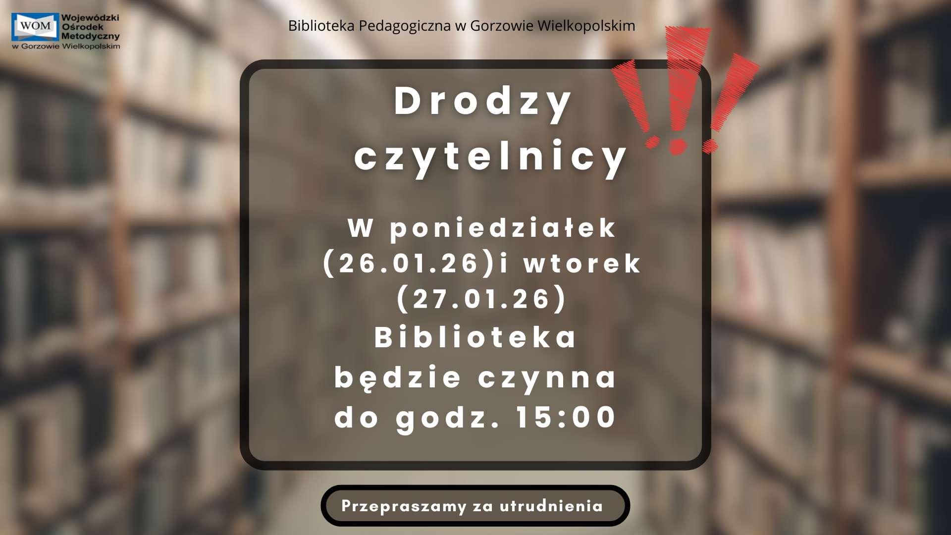 Biblioteka Pedagogiczna w poniedziałek (26.01.26 r.) będzie czynna do godz. 15:00