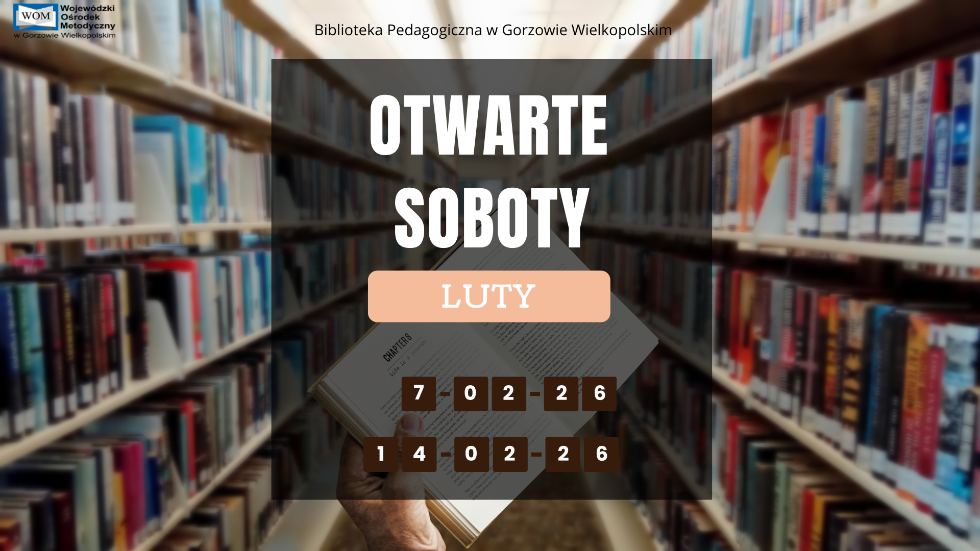 Informujemy, że Biblioteka Pedagogiczna Wojewódzkiego Ośrodka Metodycznego w LUTYM będzie czynna w następujące soboty: