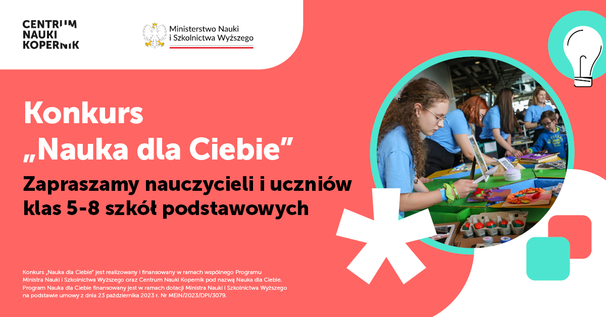 Konkurs realizowany jest w ramach programu „Nauka dla Ciebie” – wspólnej inicjatywy Ministra Nauki oraz Centrum Nauki Kopernik.
