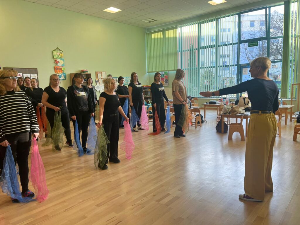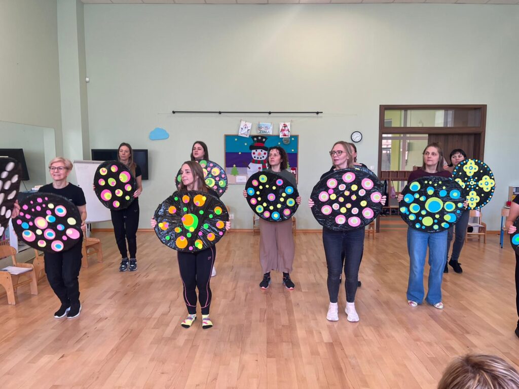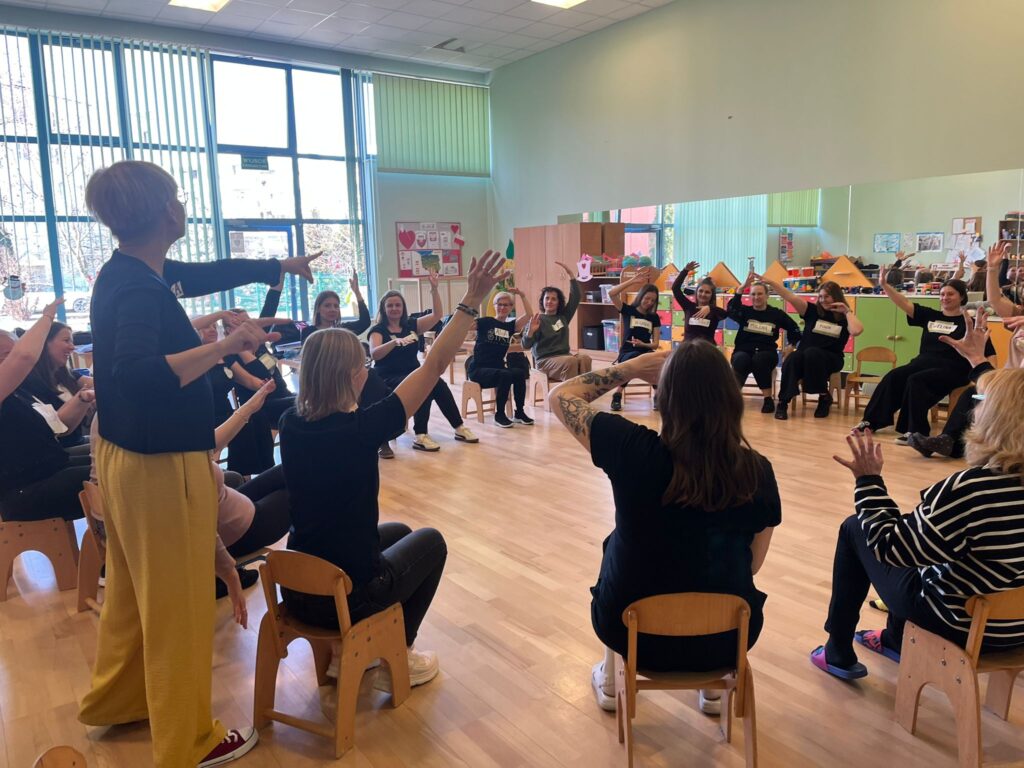 Uczestnicy zanurzyli się w świat metod opartych na muzyce, ruchu, integracji i twórczej zabawie. Warsztaty pełne były praktycznych ćwiczeń, inspirujących pomysłów i gotowych narzędzi, które można od razu wykorzystać w pracy z dziećmi i młodzieżą. Nauczyciele śpiewali, improwizowali, poruszali się i odkrywali, jak wiele radości i wartości edukacyjnych niesie wspólne muzykowanie.
