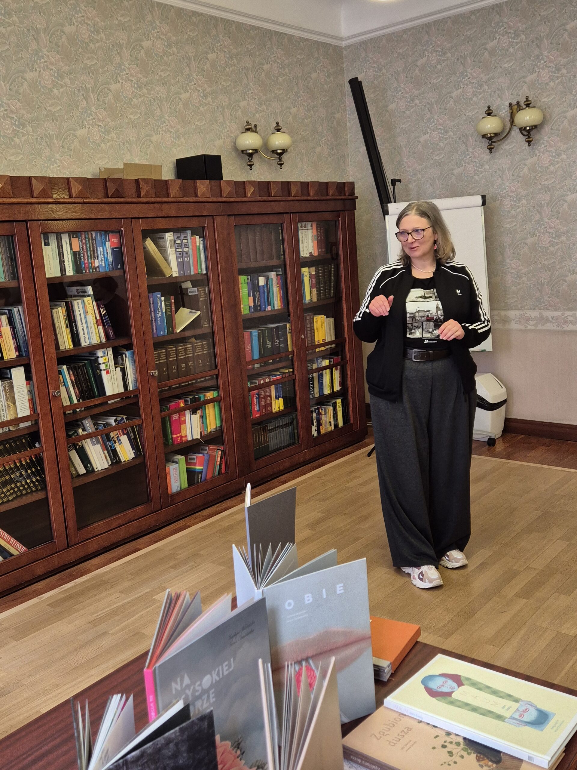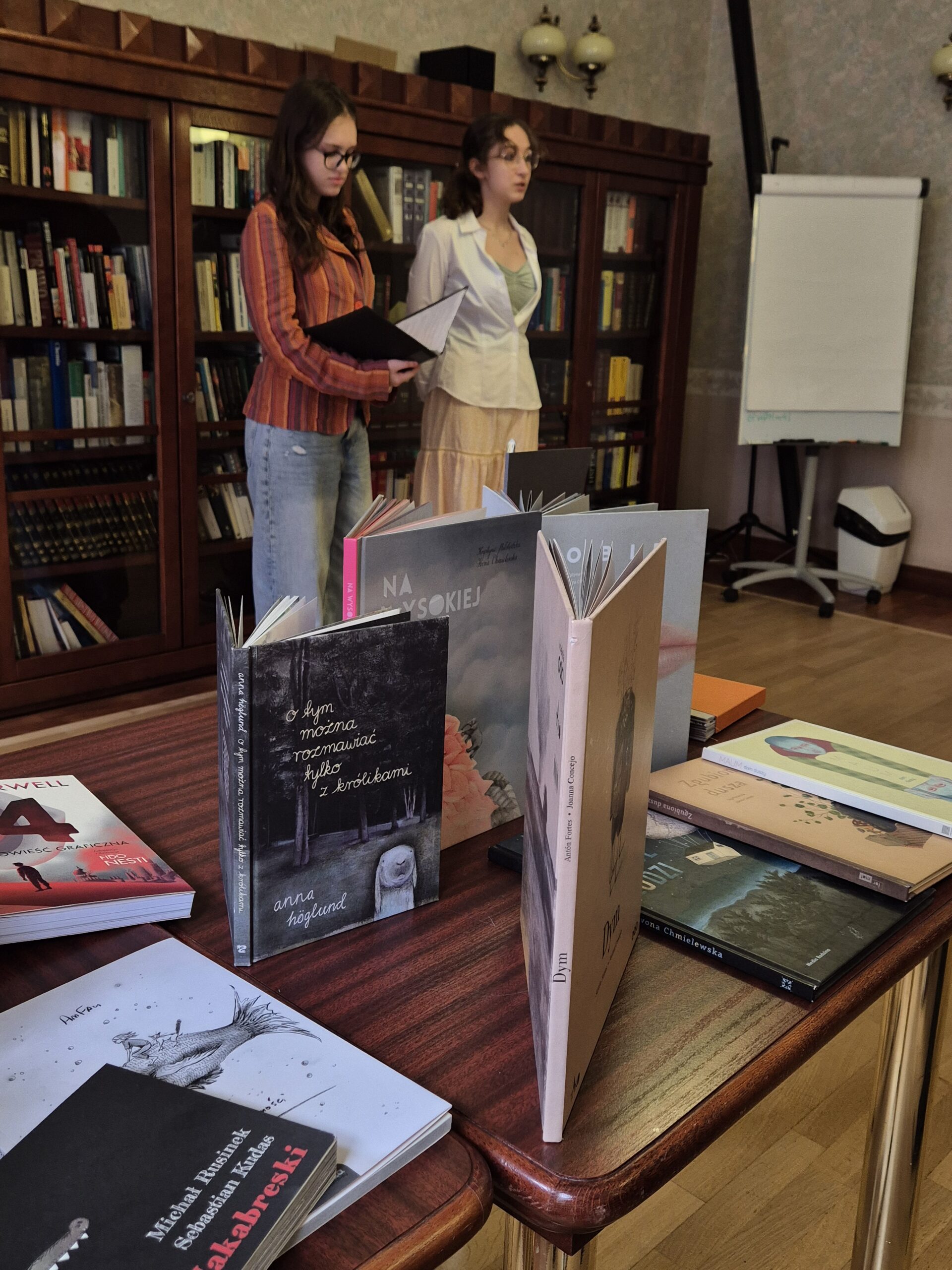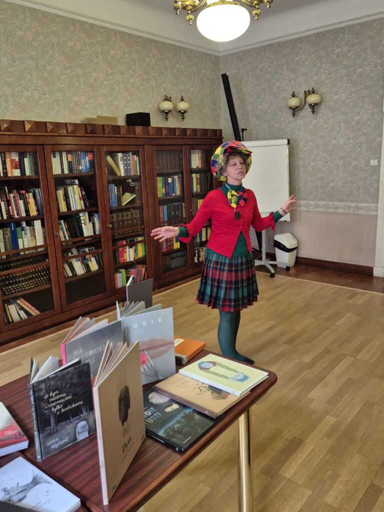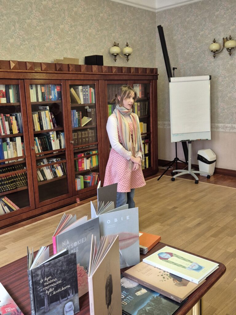 Uczniowie mieli też okazję zobaczyć niezwykłe książki obrazkowe i artystyczne, o których z pasją opowiadała Monika Żołędziejewska.