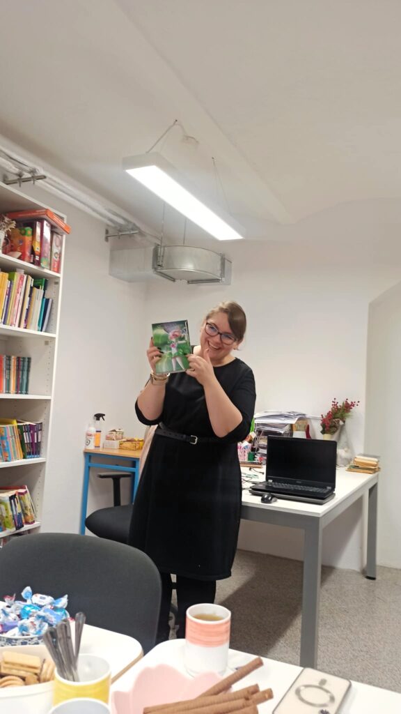 Zaprezentowała nie tylko zasób biblioteki, ale także opowiedziała o własnej drodze czytelniczej, która stała się inspiracją do wprowadzenia mangi do szkolnej biblioteki i budowania wokół niej społeczności młodych czytelników. Uczestnicy mieli okazję zobaczyć, jak wygląda organizacja zbioru mang w szkolnej bibliotece, jakie tytuły cieszą się największą popularnością, jak w praktyce wygląda praca z dziećmi i młodzieżą czytającą komiksy japońskie oraz – cieszące się coraz większą popularnością – komiksy koreańskie.
