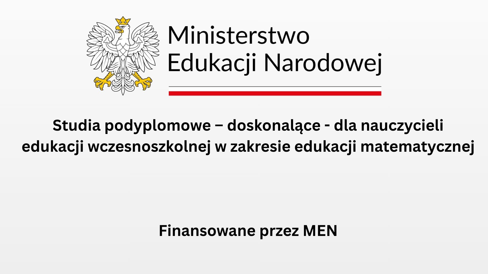 Ministerstwo Edukacji Narodowej wraz z Uniwersytetem Warszawskim przygotowało studia podyplomowe – doskonalące – dla nauczycieli edukacji wczesnoszkolnej w zakresie edukacji matematycznej.