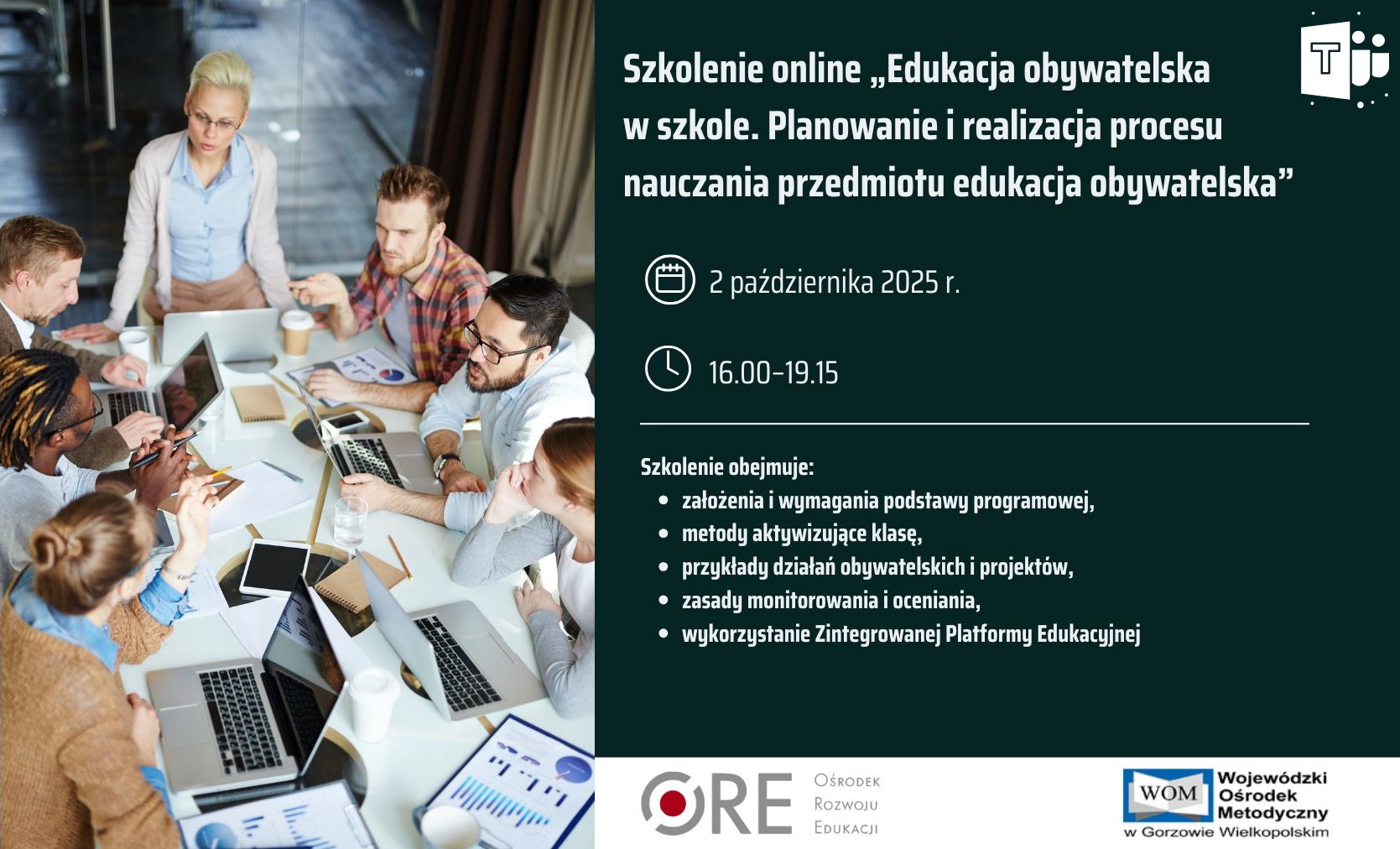 Organizatorami szkolenia są Ośrodek Rozwoju Edukacji w Warszawie i Wojewódzki Ośrodek Metodyczny w Gorzowie Wielkopolskim.